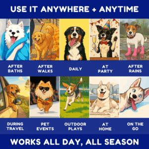 USE IT ANY SEASON + ANYWHERE: Whether it’s after a playful day at the park, a long walk, or a bath at home, this dog perfume is perfect for every moment. Its water-based, non-sticky formula works beautifully in all seasons—hot summers, rainy days, or chilly winters—keeping your dog smelling clean and fresh. Use it after grooming sessions, during travel, before guests arrive, or just for a quick refresh in between baths. Compact and easy to carry, it’s freshness on-the-go, anytime, anywhere.