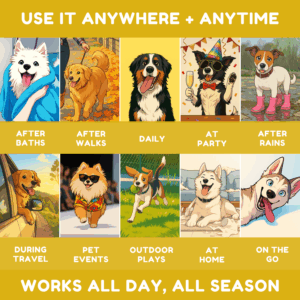 USE IT ANY SEASON + ANYWHERE: Whether it’s after a playful day at the park, a long walk, or a bath at home, this dog perfume is perfect for every moment. Its water-based, non-sticky formula works beautifully in all seasons—hot summers, rainy days, or chilly winters—keeping your dog smelling clean and fresh. Use it after grooming sessions, during travel, before guests arrive, or just for a quick refresh in between baths. Compact and easy to carry, it’s freshness on-the-go, anytime, anywhere.
