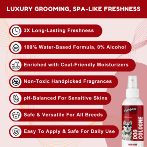 Indulge your dog in a spa-like experience with our premium dog perfume—expertly crafted for those who want more than just a fresh scent. This alcohol-free, water-based, and pH-balanced formula is as gentle as it is effective, making it perfect for even the most sensitive skin and all coat types.