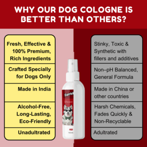 What sets us apart is our commitment to clean, skin-safe, and truly effective grooming. While many sprays rely on alcohol and artificial scents, our formula is 100% alcohol-free, water-based, and pH-balanced—made specifically for dogs’ sensitive skin. With long-lasting fragrance, salon-quality freshness, and no sticky residue, our perfume offers a luxurious grooming experience your dog will love—and you’ll notice. Trusted by pet parents who want more than just scent—they want safety, softness, and real results.